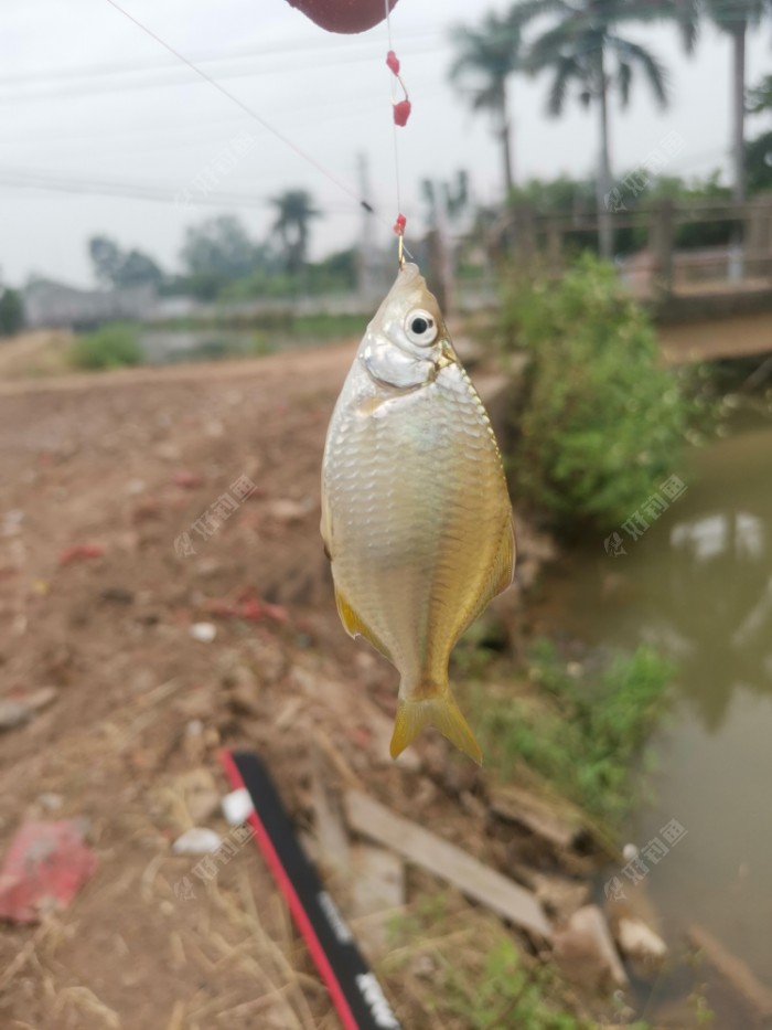 这个位置,切线跑了一条一斤多的土鲮,收获一条二指,两条半斤的土鲮。因为本意是抽白条,用的是0.6的2号袖钩,没想到一直阴沉沉的天,白条不活跃。