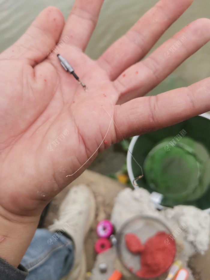 开的蓝鲫,加了一点虾粉,准备抽白条的,这个位置应该还不错,结果没想到效果很惨,很惨。然后想到这边的人都是用蚯蚓钓翘嘴,就重新开了一份饵,蓝鲫+红虫风暴,下钩秒切