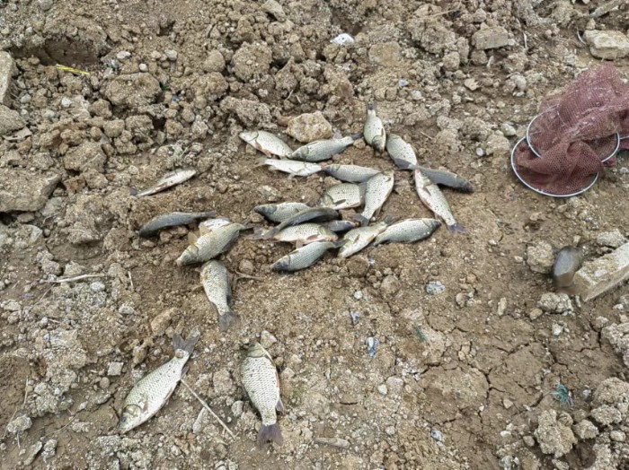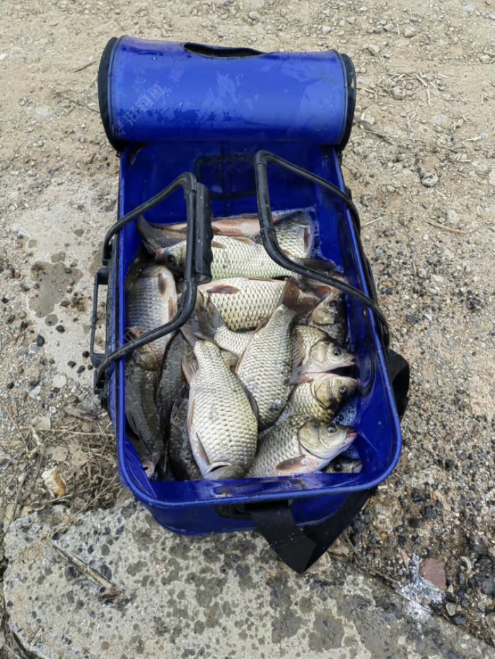 三个人的战果,同事钓了12尾左右,领导钓了5尾,合计约50尾,桶快满了。