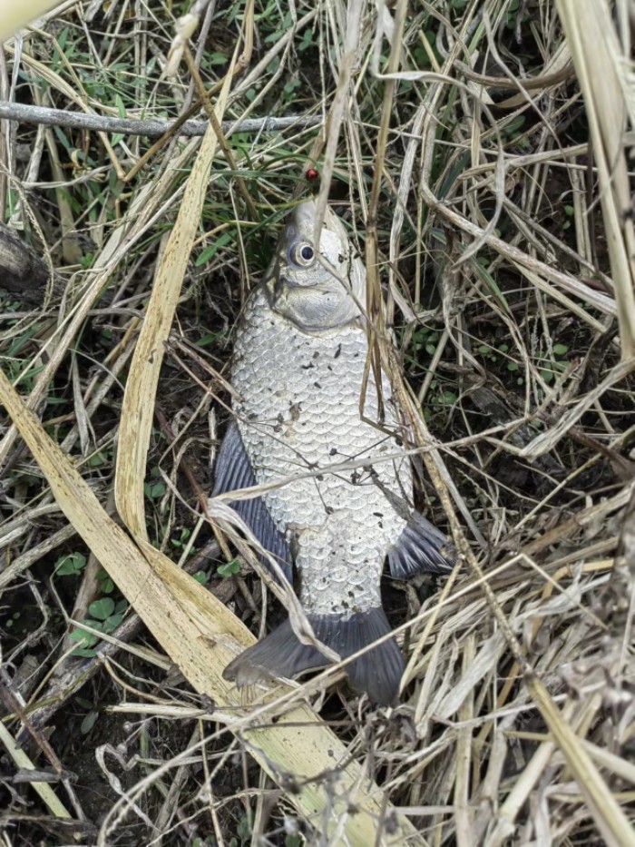 节后第一天上班,路过秘密自留地时打了两个窝,准备中午来过下瘾。 窝料: 自制酒米,加菜籽饼粉,早上做早饭时发现一瓶牛奶过期了,没舍得扔掉,带在车上全部加到窝料里了,估计今天的爆护跟这个也有点关系。 线组:8米杆,1.0主线3米长,七星漂,8.4号的动态朝天钩,蚯蚓作钓。 中午提前吃饭,11点多到达,下杆后就干脆利索的顶漂,开杆即中板鲫一尾,随后就开启了连杆模式。 上图: