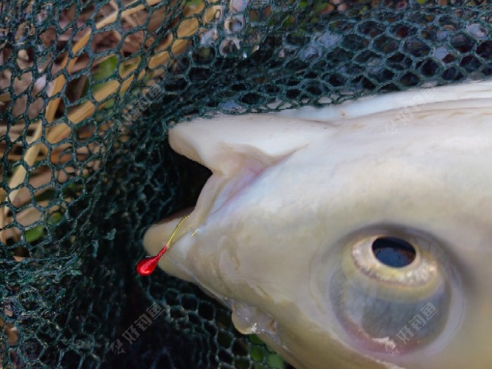 饵料就用老三样,多加了点拉丝粉增强附钩性,带了一包蚯蚓备用。 由于前面打过窝有将近1个小时了,开始时用饵料作钓,下杆就有口,但浮漂动作很乱,应该是小鱼在闹窝。10分钟的时间,连续拉了几个白条,还有2尾小鲫鱼。 惊喜就在不经意间出现,这时浮漂点动了几下,然后缓慢的上升了4-5目,然后停顿。 这个应该是标准的鲫鱼入口动作,必须得打了。提竿,中鱼,但从水底传来的力量很沉,不像是鲫鱼。 这可不是什么好消息,今天的线组装备是用来钓鲫鱼的,碰到大货,肯定是保不住的。 只能硬着头皮慢慢来了,不能硬抗,慢慢溜,结果怎么样就听天由命吧! 中间过程就无法描述了,险情频出,惊心动魄,几次差点断杆断线....... 花了约10分钟,终于把它溜翻了,乖乖的进入抄网。
