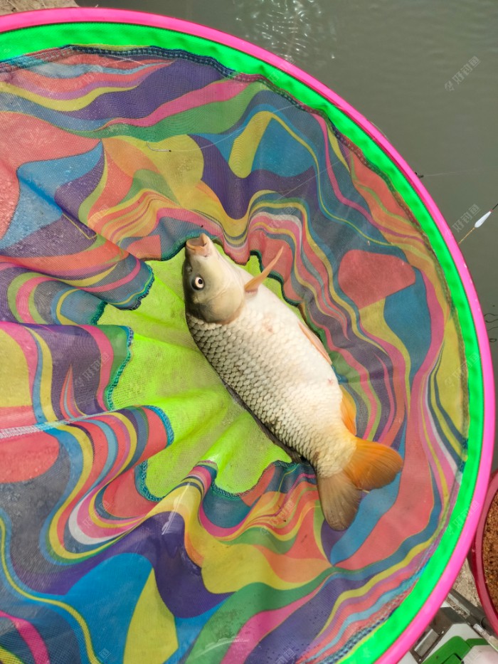 继续垂钓,5分钟后一个漂亮的小顿口,迅速提竿中鱼,力道不大,一尾鲫鱼完美入户,一斤左右。 由于黑坑的鱼比较滑一定要做到眼不离漂手不离杆!
