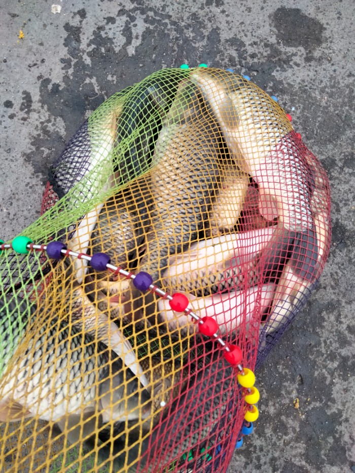 大约9点左右来了两个20多点的小伙子坐在了我旁边,他们钓了两个多小时了也没口,看样子是新手,说来过几次大都空军而归。能钓两条鱼就知足了! 正好我的红虫也用光了,我说用我的鱼饵,用你的红虫开饵我们一起用。他同意了,我开了一份红虫肉夹馍我们一人一半。 今天气温还是挺高的,明天就要降温了,而且一直在刮东北风,一刮风就没口。 我还是上号钩肉夹馍,下钩挂湿散,一直也有口鱼情不快也在慢蹦。 钓到下午2点左右腰疼实在厉害,实在是不想钓了就提前收了,正好有个饭店的老板来收鱼,就卖给他了! 一共钓了9个鲤鱼,7个工程鲫,称了一下鱼获一共30斤多一点,按3元一斤就卖给他了,共92元,收了他90元。本次钓费70元,已经完美上岸了。 用我饵的那个小伙子2点前就钓了3条鲤鱼2条工程鲫,兴奋不已,继续钓到下午去应该还会有更多收货吧。