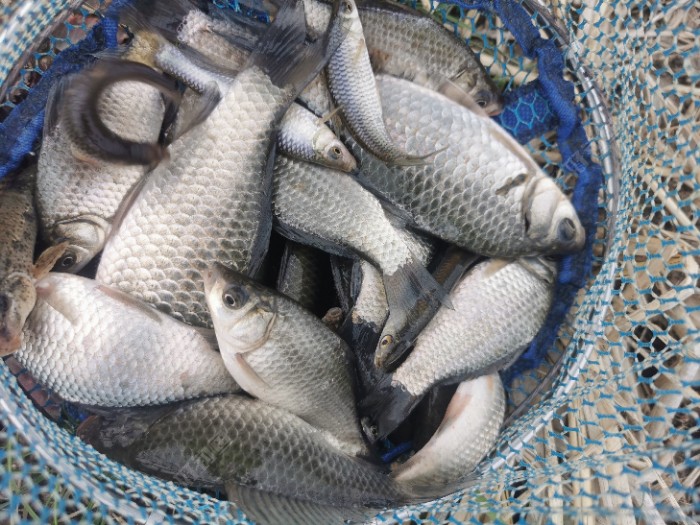 鱼的个体以一两左右的小鲫鱼居多,大的不多,也有小麦穗闹窝,下去叨两下红虫就咬得差不多了,所以比较费红虫。