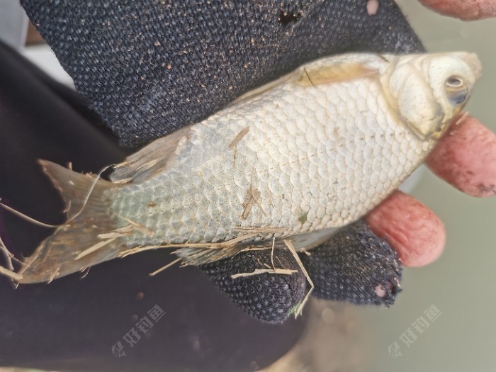 可能是今天天气比较闷的原因,用蚯蚓小鱼都不来闹窝了,半个小时浮漂都没有什么动静。又继续等,才渐渐有口,第一尾就是一条小板鲫。