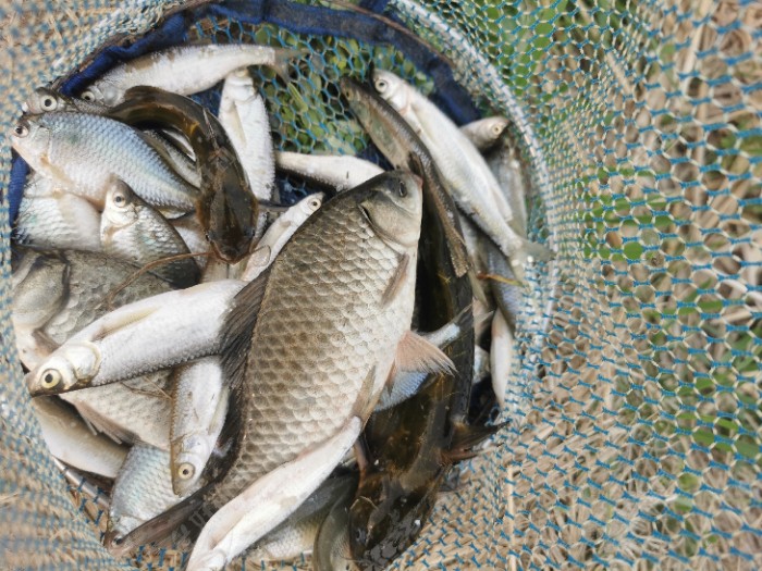 由于鱼情不是很好,所以我就蚯蚓、红虫、商品饵交替使用。闹的时候就换成蚯蚓,没口的时候就换成商品饵拉一拉,聚一聚鱼。 断断续续地上着鱼。