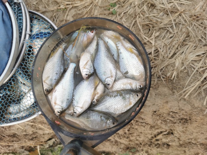 今天作钓的鳑鲏可谓是让我开了眼界,就像是掉进了鳑鲏窝一样,大个体的鳑鲏一连钓了几十条,红虫、蚯蚓、商品饵什么都吃,还有双飞的,我从来都没有遇到这种鱼情,刚开始我还是边钓边扔,最后我索性放到了鱼护里,我倒要看看今天能钓多少鳑鲏?
