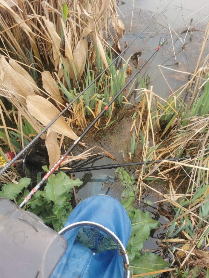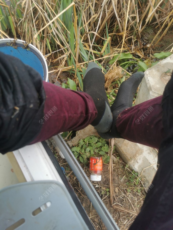 转眼到了下午三点左右了,我看看也没什么希望,准备收竿了,这时只见浮漂上顶了好几目,原以为是白条,结果一提竿份量非常大,一尾大板鲫溜了两下后,颤颤悠悠地被提出了水面。 谁知线组缠在了前面的芦苇上,1.0的主线一下子从中间断了,鱼掉在了芦苇中,这下芭比Q了。还好,由于断的线组比较长,缠在芦苇上,所以鱼还没有跑掉。 我就拿出抄网,准备去捞,谁知够的时候一下没站稳,人“扑通”一下就掉进了河里,这里的河水比上次深多了,上次只到脚踝,这次一下到了膝盖。 奶奶的,膝盖以下全部湿了,好在鱼被抓住了,旁边的钓友把我拉上了岸。