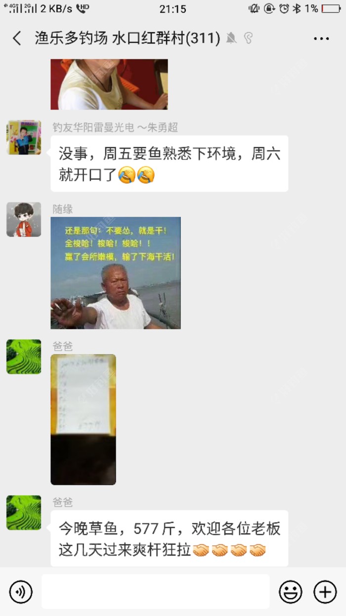 放新鱼草鱼577斤,综合塘收费80/5小时随便玩 可全部带走鱼获,可2元回收 综合塘:大多都是草鱼,鲤鱼,罗非,鲮鱼