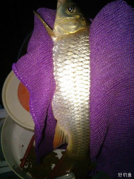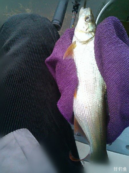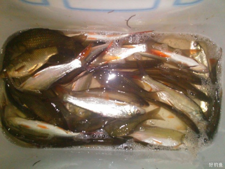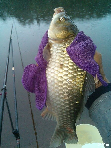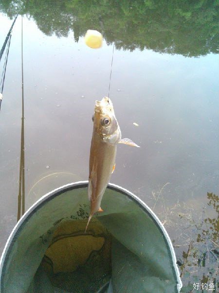 下午5点,红尾突然消失,嫩包谷不动了,于是换上商品饵,一下去就有动作,一提,居然双飞,还是板鲫,鲫鱼MM进窝了。