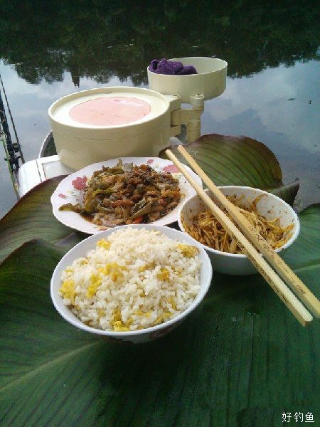 由于水深5米,我钓的是6.3米的竿,一个上午下来,手有点酸了,休息一下,去农户家里讨点水喝吧,顺便弄个午餐。