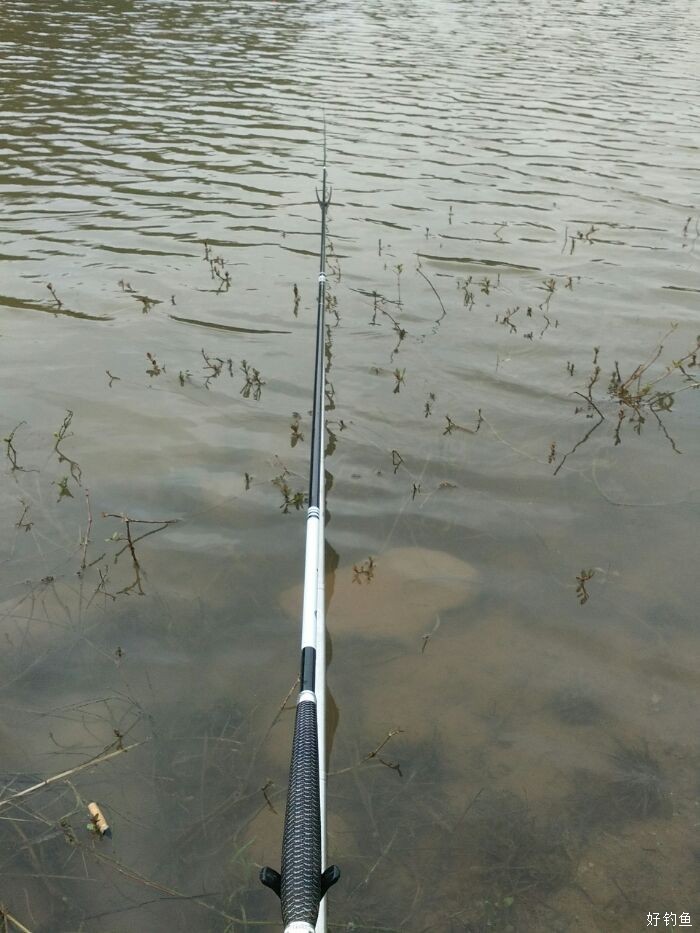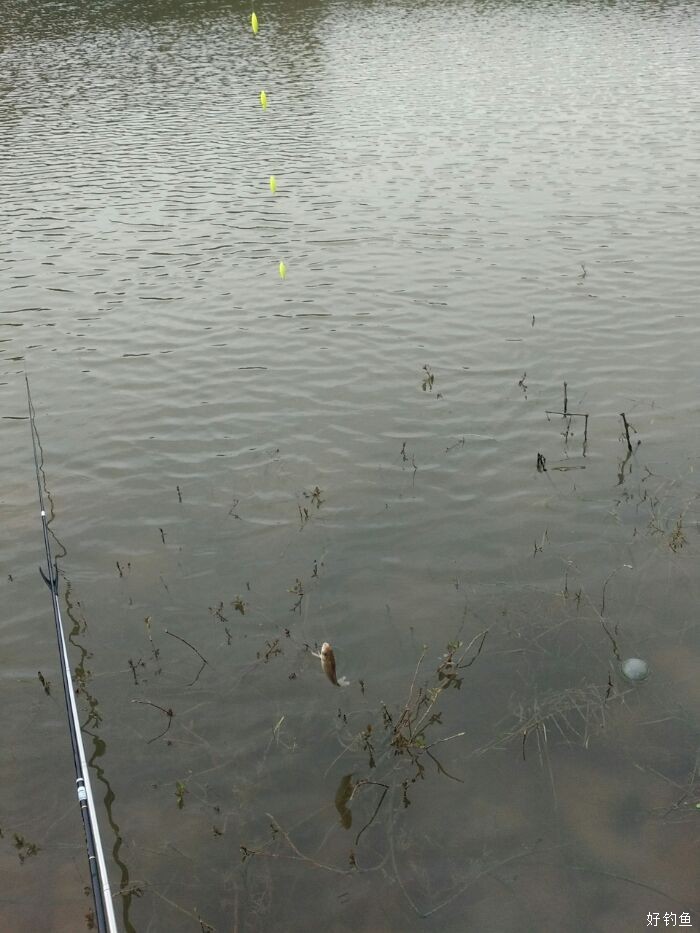 今天我就选了水草边,架枪一试水,我去,只有两尺深水,不管了开搞,因为我已经把窝窝打下去了??,挂了蚯蚓开始等鲫鱼妹妹来约会呗,什么叫人品,五分钟就来了