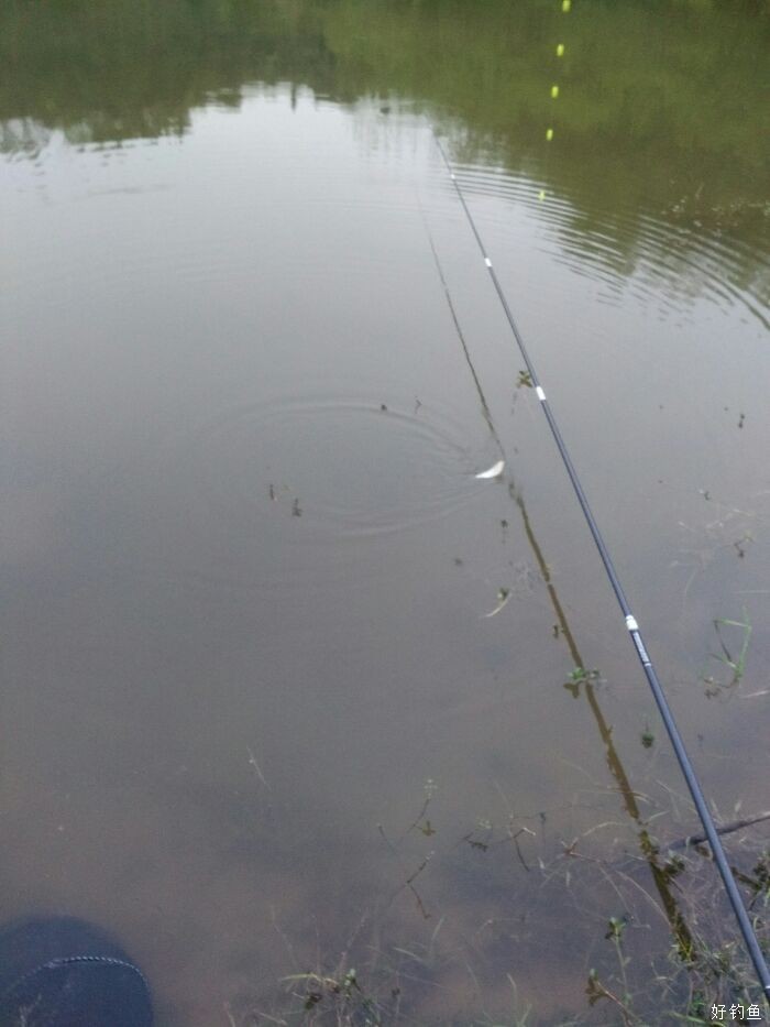 呵呵,来菜了哦,一阵小连杆,呵呵,来了一个大黑漂一抬杆,就听到杆上面发出了呜呜的音乐, 哪个手感爽歪歪,哈哈过瘾啊,由于线主小,也不敢大意所以没来的急拍照 ,见靓哦,我一看有搞头,继续努力吧!