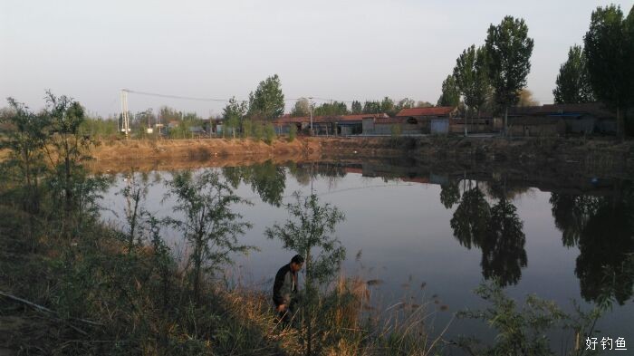 和钓友沟通中~,发现鱼塘的北面下了两道网?顿时心中感到拔凉拔凉地? 21点左右一村民(下网的)过来搭讪,问这问那,最终的意思是我旁边有他下的鱼网,别给他搞破坏?!!他告诉咱这口塘是他们村里面的,鱼被抓得差不多了,里面有一个半个大家伙,很难钓上来……