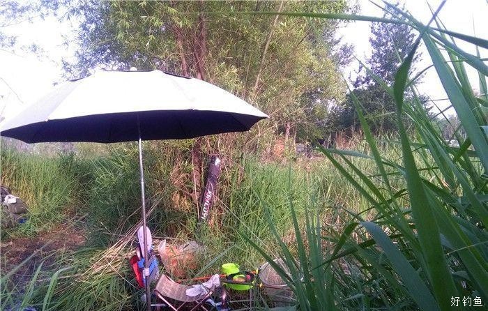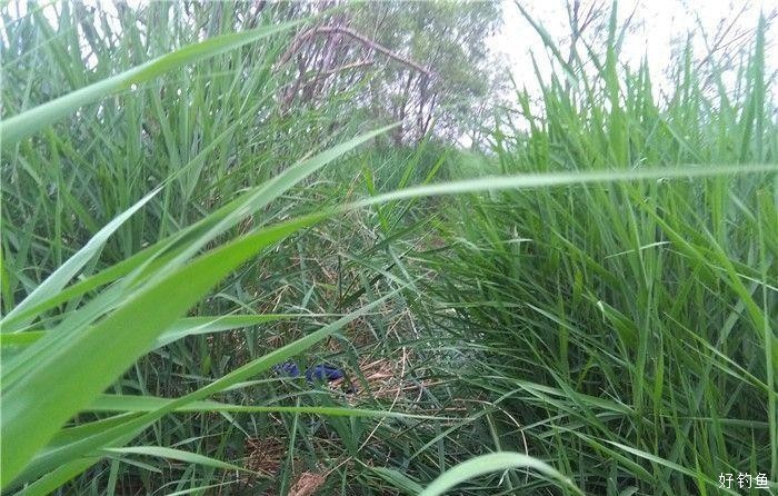 淌着泥泞,到5月13号钓过的一个钓位试试,这个钓位的特点是光水面开阔,水也深一些,对钓白条要有利。背后和大水面相同的小塘,已经有了两个船钓的钓友,外边干燥点的好钓位,也早有钓友占领