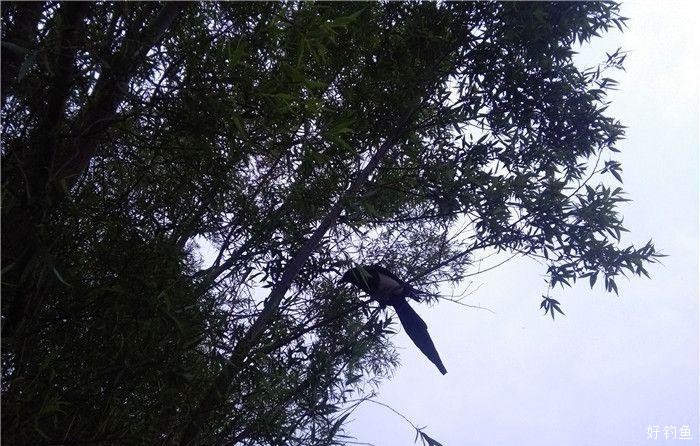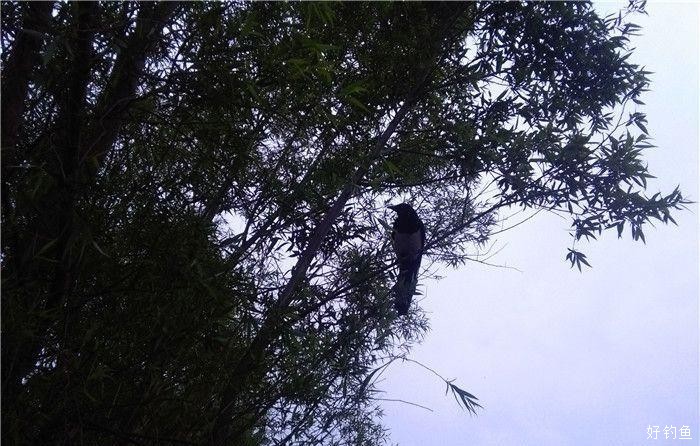 天凉爽,鱼口不错,钓位隐蔽,连喜鹊也停留在了头顶上方的小树上,心情自然大好
