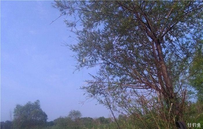 7点36分,一条小鲤有点力道,左边水草密,右边有树,大点的鱼不好上,不小心就上树了,有小镰刀可以搞下来不至于损漂丢线