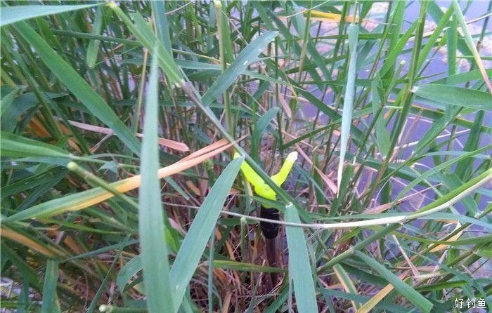 水涨了一些,进到上周钓位,钓位隐蔽,上周遗忘在草丛里的小叉子还在