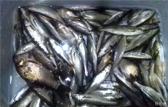 没有悬念,最开始上来的都是大白条和小翘嘴,七点多,鲫鱼开口,主1.2子0.8伊豆2号小钩,负铅一克多的细尾鲫鱼漂调五钓三四五,抓下沉信号,鲫鱼和其它小鱼可以精确逮到,蚯蚓基本没用