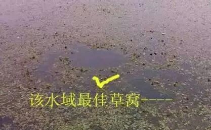 图标6:草窝不能放过,钓鱼不钓草、等于瞎胡跑。 原因分析:水草处有三点优势第一鱼在受惊是有藏身之处、第二是有食物如、小虾、昆虫、鸟类粪便,第三有利于鱼在此处繁殖后代,这时将给我们提供垂钓的时机。