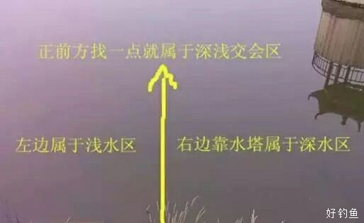 图标4:选近岸深浅交汇处或者探测到深坑不可放过。 原因分析:根据鱼有“一日三迁”早、晚溜边、中午游到深水区域避暑的习性,早晚钓浅滩中午钓深坑正好实践一下是否“灵”这时将给我们提供垂钓的时机。