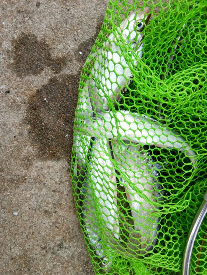 这段时间,或上班或有事,遇个休息还雷雨,一直没钓鱼,早早的安排今天去解毒,昨晚在平台遛哒到11点多,心想不能再玩了,得睡觉,睡了也没睡着,脑子里一直在想今天会怎样,会是向上两次一样,还是能不能碰个大点的?我想钓鱼人的心中,都有个野钓大物梦吧??今早安排好孩子,直奔钓点,到那己经8点多了,筏竿,串钩,蚯蚓先打头阵,接着路亚开抛,无奈一直没口,又把路亚挂爆炸钩,放一边。手竿上阵,打频率,拉半水,也是没口,最后服了,再用路亚抛吧。上天看帖,一大神说的好:路亚就是骗鱼的!?最终一共骗到了4条小白丝,白瞎了夜里一脑子的各种鱼获梦!