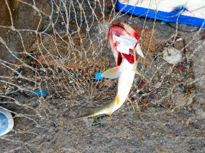 第一次跟朋友去漳州钓海鱼,以为是阳光,沙滩,礁石,结果是一个桥下面,旁边有出水口,为了偷懒,直接海杆改滑漂,总海蜈蚣挂钩钓浮,偶尔上一条海鲢,让我体会了一下海鲢的冲劲与暴力,可惜没过足瘾,旁边有一钓友...