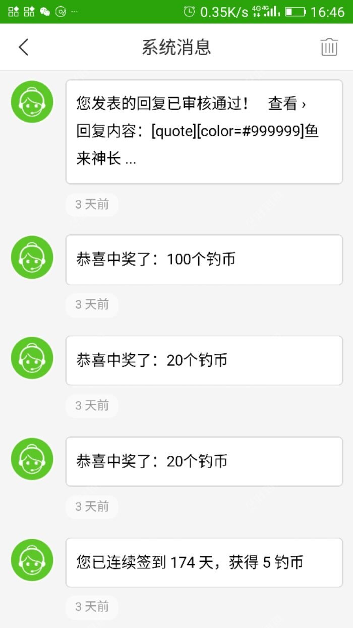 寒冬腊月迎霜降,天寒地冻破冰时。近日来小弟的运气也随着冬季的来临而封冻了,偏偏就在这一筹莫展之境,竞然运气破天荒的好,转盘抽奖赢得这么多钓币。可谓是天寒地冻破冰时呀。 元月十三号:一个一百币的,二个二...
