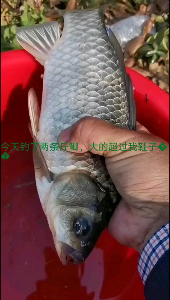 今天爽一把,收获两条斤鲫,其中一条长度超过我鞋子!估计有一斤三四两???