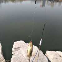 刚买的新竿子,还没下水,今早起个早来到新钓点试杆,这个钓点一直想来,没时间来,水有点浅,以前被人下过网,大鱼不多,全是小鲤鱼,小鲫鱼,小翘嘴,不过环境不错,钓箱什么的都没拿,轻装上阵,就带一个马扎,炮台,一根杆,一个线组,鱼饵在家和好的,到地方才5.20.调漂找底做窝一气呵成!静等鱼儿上钩了!下面是鱼获!