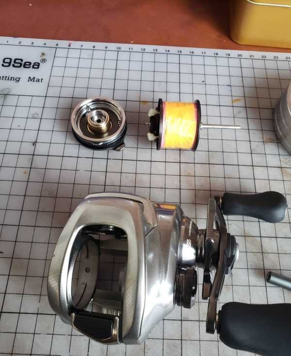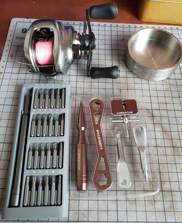 一钓友轮子,买来没用几次,前几天路翘鱼时夜里游泳上岛,轮子在水里泡了蛮久,再使用时发现有异响,顺滑度不如以前,初步估计是轴承异响,润滑油乳化,拿来准备彻底清洗大保养! 准备工具,开拆! 取线杯, 拆开...