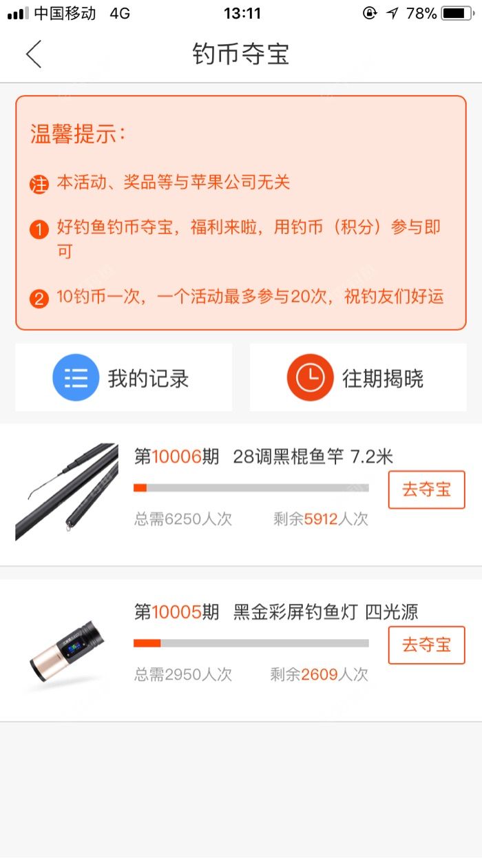 昨天更新了平台,新出的夺宝活动 广大钓友都很理智,到现在都没有多少人参加,看来大家都在观望