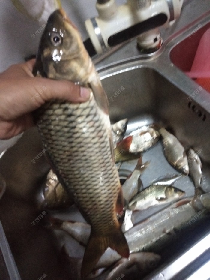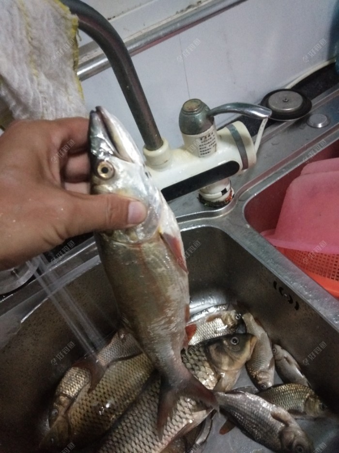 今天又有新的收获,收获鮰鱼一尾!一斤左右!这也是手竿饵料第一次上,也可以算得上是大姑娘上花轿头一回了! 钓了两条小草鱼,加起来三斤左右,可能是上次涨水从鱼塘跑出来的,所以没放流!几条小鲤鱼给放了!白条...