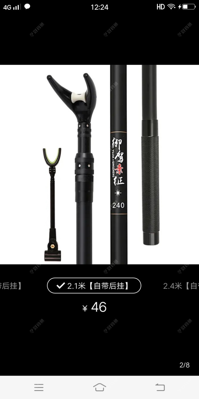 12号在钓币商城花一万八千多钓币加八元RMB换了个2.1米炮台今天到货了, 迫不及待的打开看了一下,没有想象中的那么粗和硬,不过还好才2.1米架个5.4米竿应该没什么问题! 羊角有点偏大(个人认为再小...