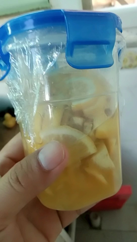 (试验)自己泡了点果酸,针对天气闷热天使用,一个柠檬切片,每片上面放一勺蜂蜜,加上二两白酒泡一个礼拜就可以使用了?