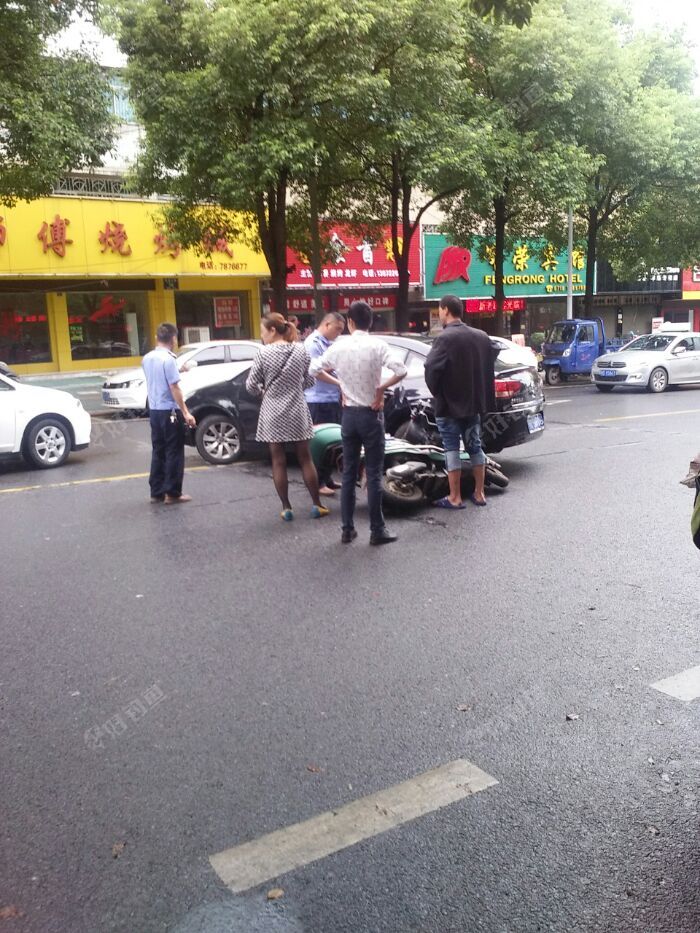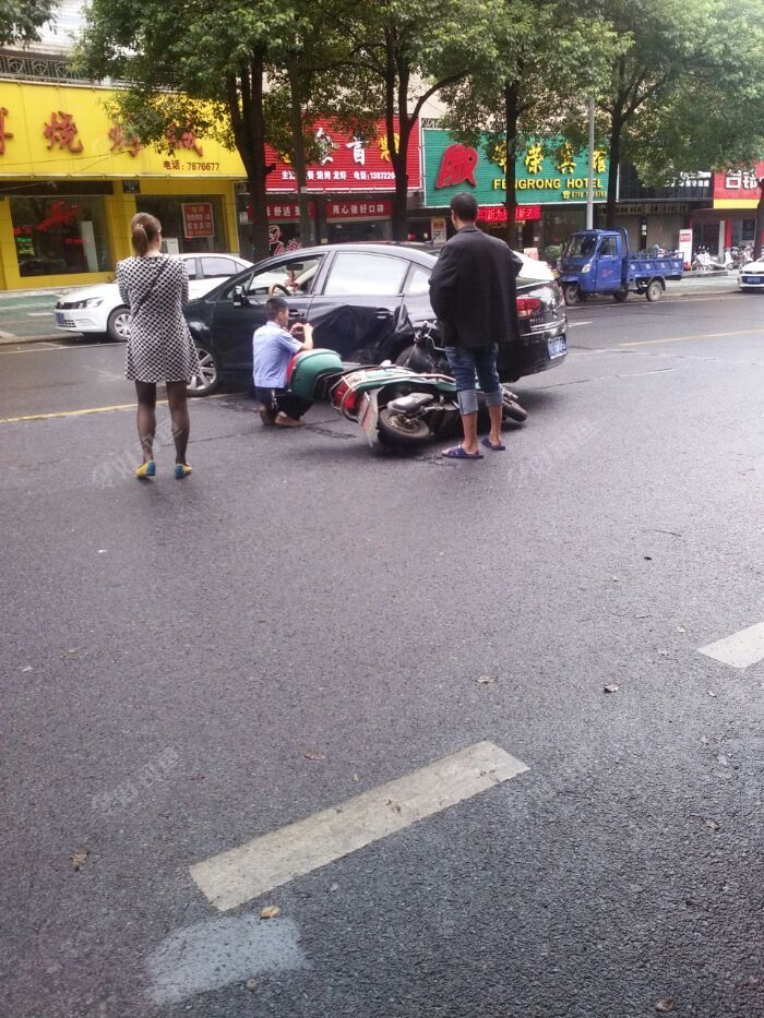 下午3点半准备去钓鱼,正出小区门口就遇见一车祸现场,小车掉头遇电瓶车咬屁股,小车左后门凹陷,电瓶车前轮凹陷(小车开走后才看见的),一辆特警车停在旁边,四五个特警维持现场,只听女司机在埋怨电瓶车男,男瓶...