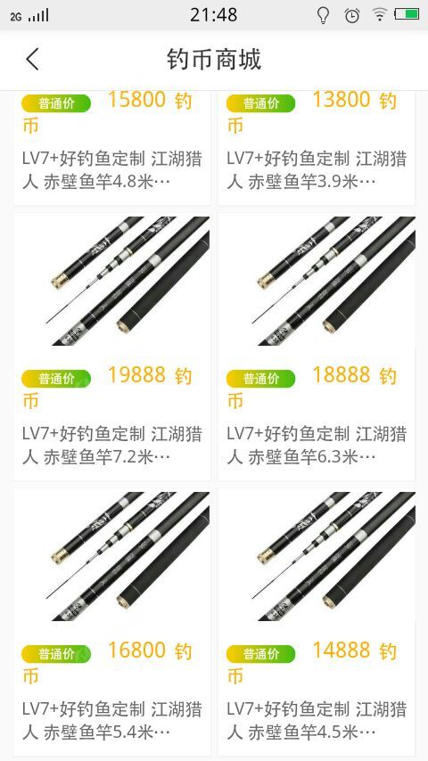 不知什么时候钓币商城里多了这么多长的钓竿,正是我梦寐以求的,可钓币啊钓币你啥时候才能不显示〝钓币不足〞啊!