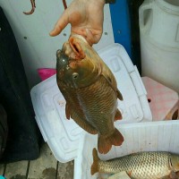 哈哈……初一到初五就钓了这几条,有口!但是吃得太轻了!眼睛不好(近视),看不清標向,要不鱼获可能要比现在多。???