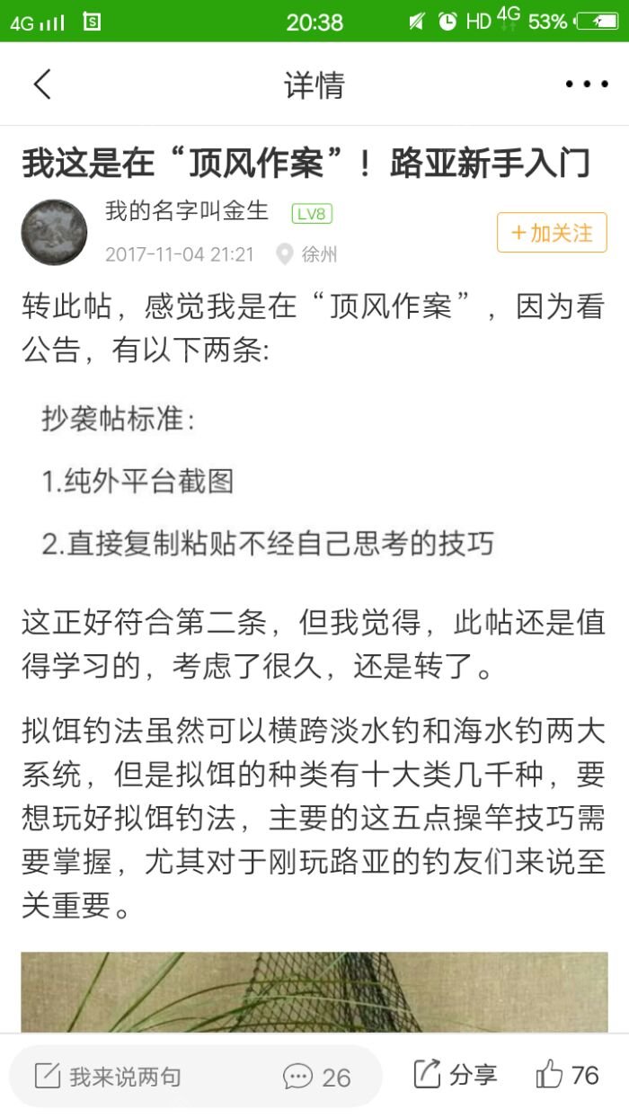 转此帖,感觉我是在“顶风作案”,因为看公告,有以下两条: 这正好符合第二条,但我觉得,此帖还是值得学习的,考虑了很久,还是转了。 拟饵钓法虽然可以横跨淡水钓和海水钓两大系统,但是拟饵的种类有十大类几千...