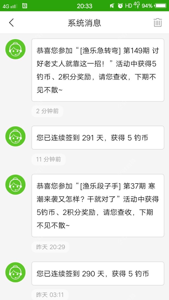 不知不觉下载这“好钓鱼”APP已393天,自从下载的那天起,就深深的爱上了这里,在这里学了很多东西,也得了实惠,在商城里兑换的宝贝,已全部收到,在此感谢平台! 我这人文彩不好,就表达下这感谢的心情!
