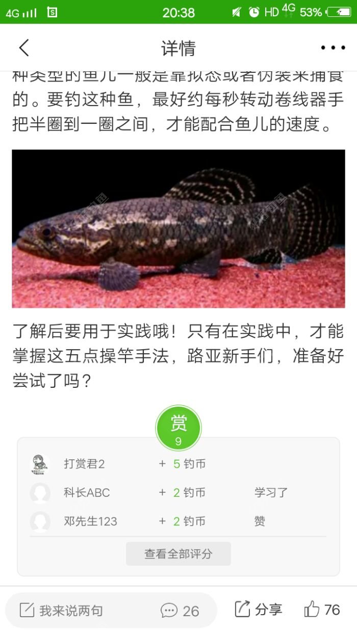 如题!这几期参加活动,看有钓友参加活动被打赏!看了一下,都是其他钓友打赏的,但具体怎打赏!我怎没找到? 谢谢!