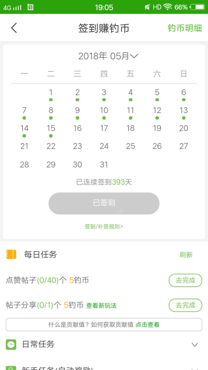 昨天做完任务后,偶尔发现我的积分没有涨,今天试了一下,做任务回帖30个,积分涨了6分?,今天签到后,做任务之前: 钓币是23479,积分是35272,做完任务后钓币是23499,积分是35278,30...