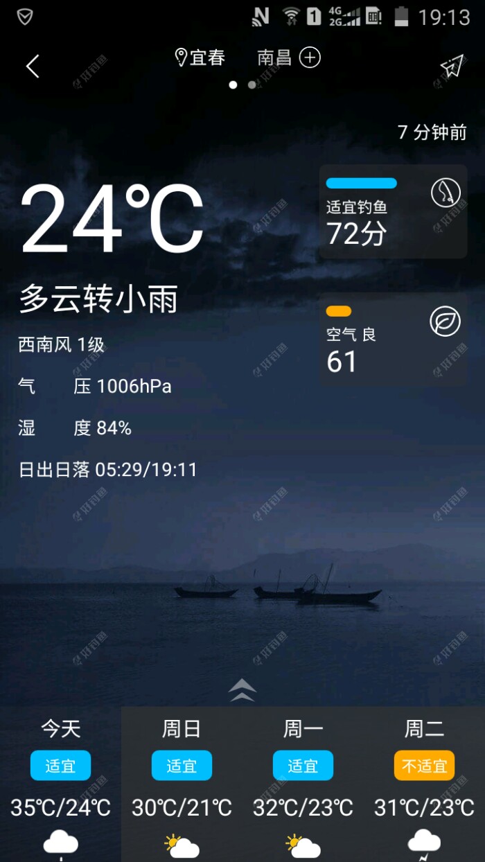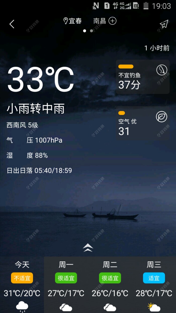 连续的出钓非但没解完毒,瘾还越来越大了,不说了,既然如此抄家伙出发吧,先看下天气。 显示不适宜钓鱼,天气闷热,事实也正是如此,到钓点一看,鱼全浮在水面上撒泼耍赖,好不热闹,你们是热闹了。我可就解不了毒...