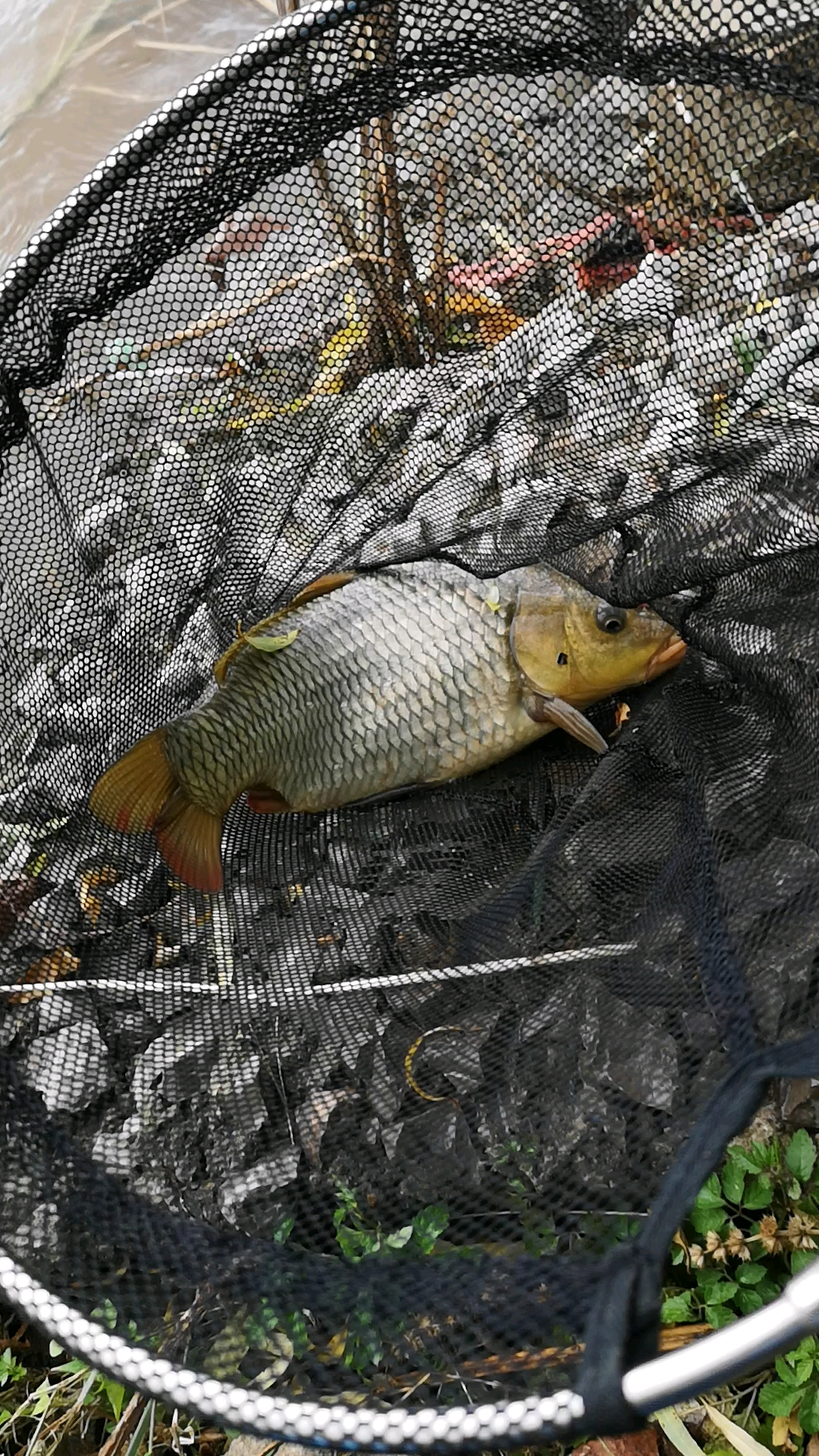 只有一个小时的时间,也到河边坐坐。小鱼很多,搓饵避小鱼到底。半小时后,一个很轻微的顿口,没逮住,浮漂接着恢复到钓目稍高点不动,大概10秒后半目下滑,打了,正口!0.4子线,只有抄网头抄鱼。溜鱼时不敢拍照,入护。旁边钓友说我这个位置前后来了三拨人没上正经鱼,我运气太好了,一个小时后收拾回家!