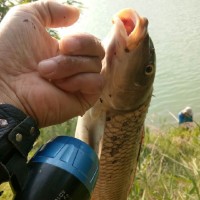 刚刚学着钓鱼,每次都有收获。