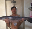第一次钓鲟鱼,下杆不到小时上了一条鲟鱼