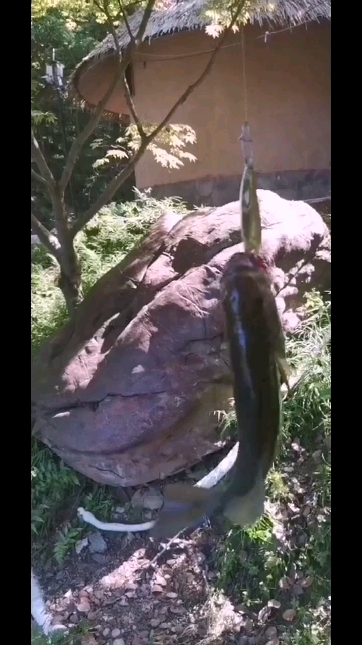 去年自己在外面捕捉的小鲈鱼苗,今年长大了不少,小的半斤,大的一斤多了。闲来无事拿起路亚试试感觉,一直打龟中,从来没放弃。口还不错,三口上两条。跑一条。