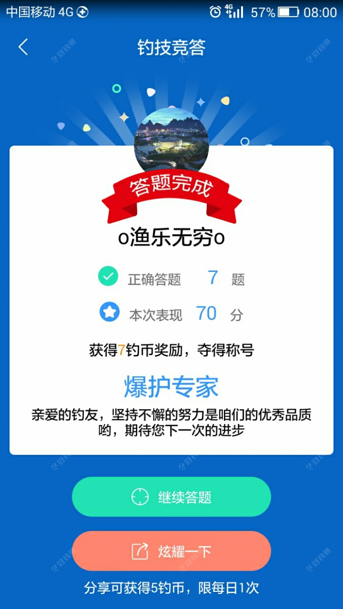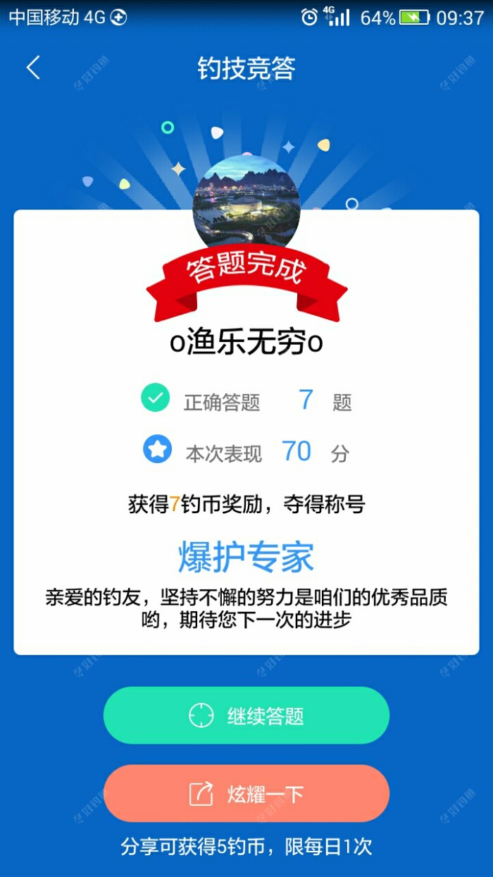 连续三天都是只对七题!不过这个"爆护专家"称号挺不错的!希望每次出钓都能爆护!?