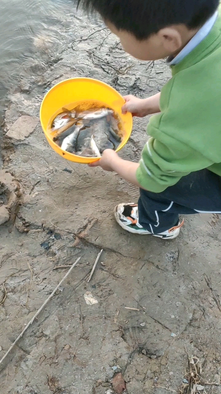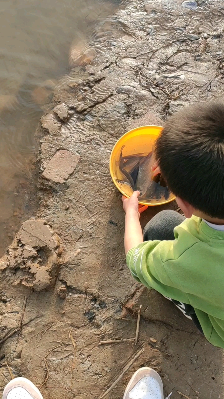刚才的鱼获放了,本打算走,小家伙不过瘾,又钓了几条。
