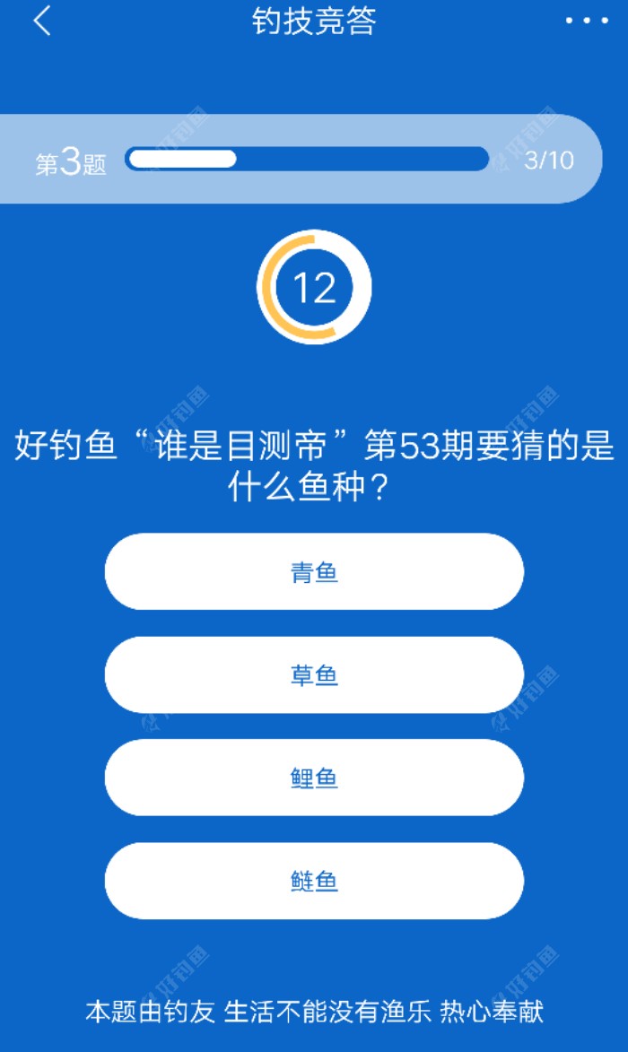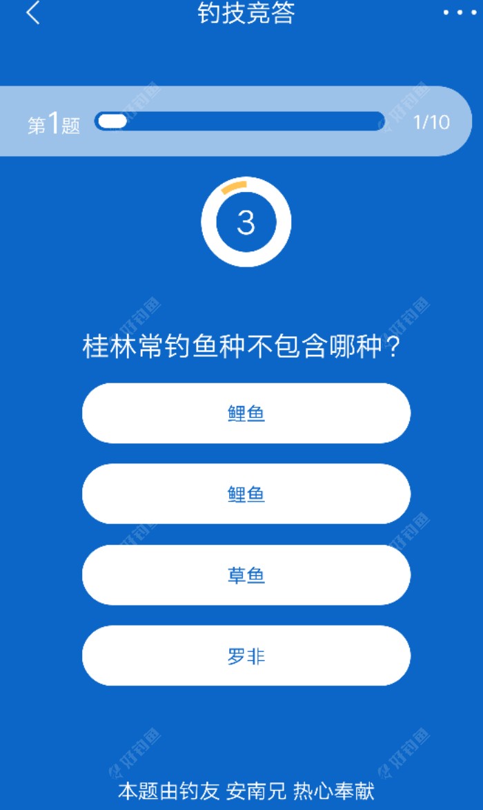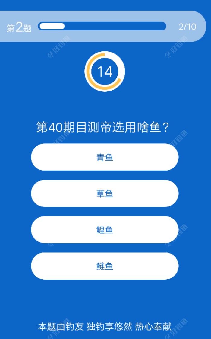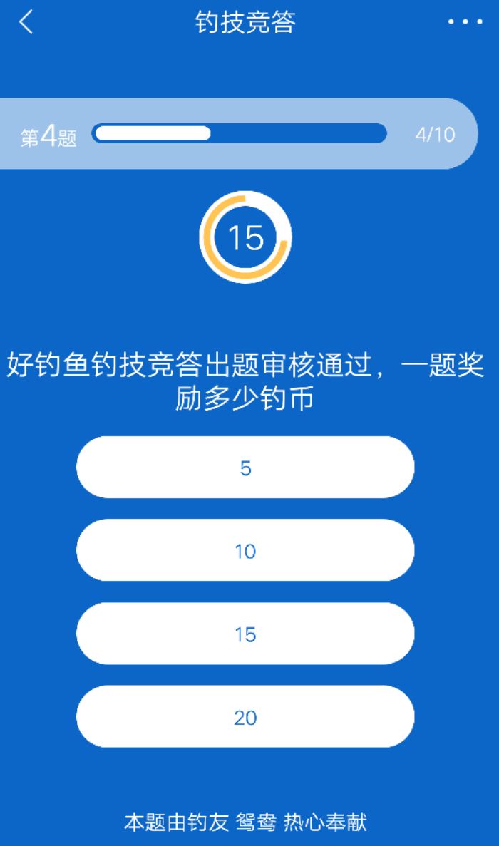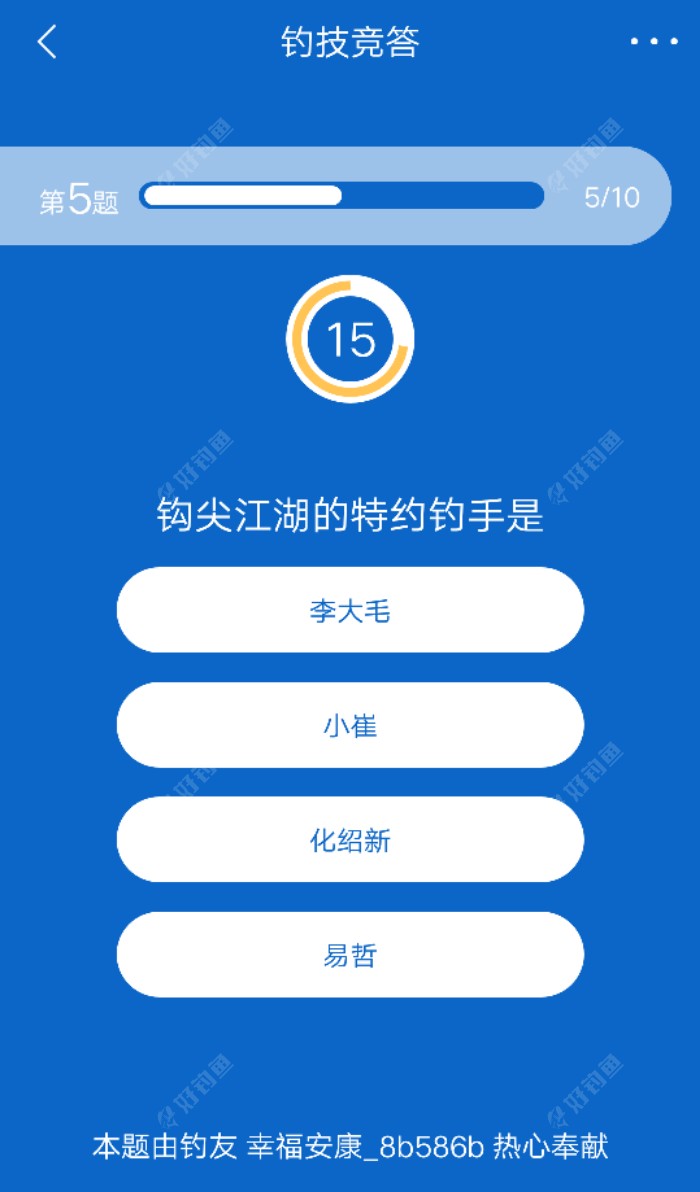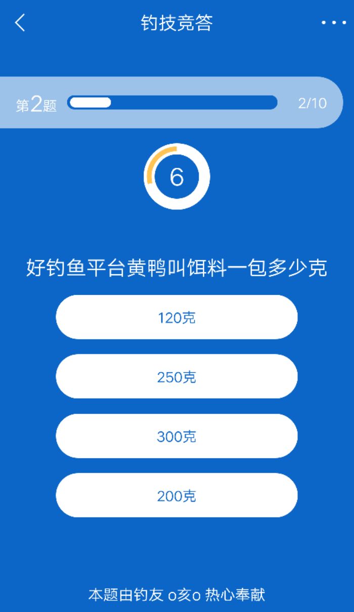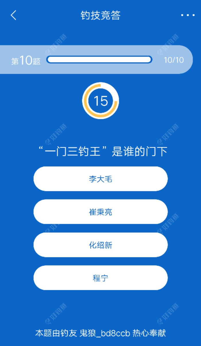 钓技竞答该改名了,看看各位大师的问题,真不知道和钓技有啥关系!难道钓鱼要研究某人,平台物流,饵料几克,诗词歌赋?